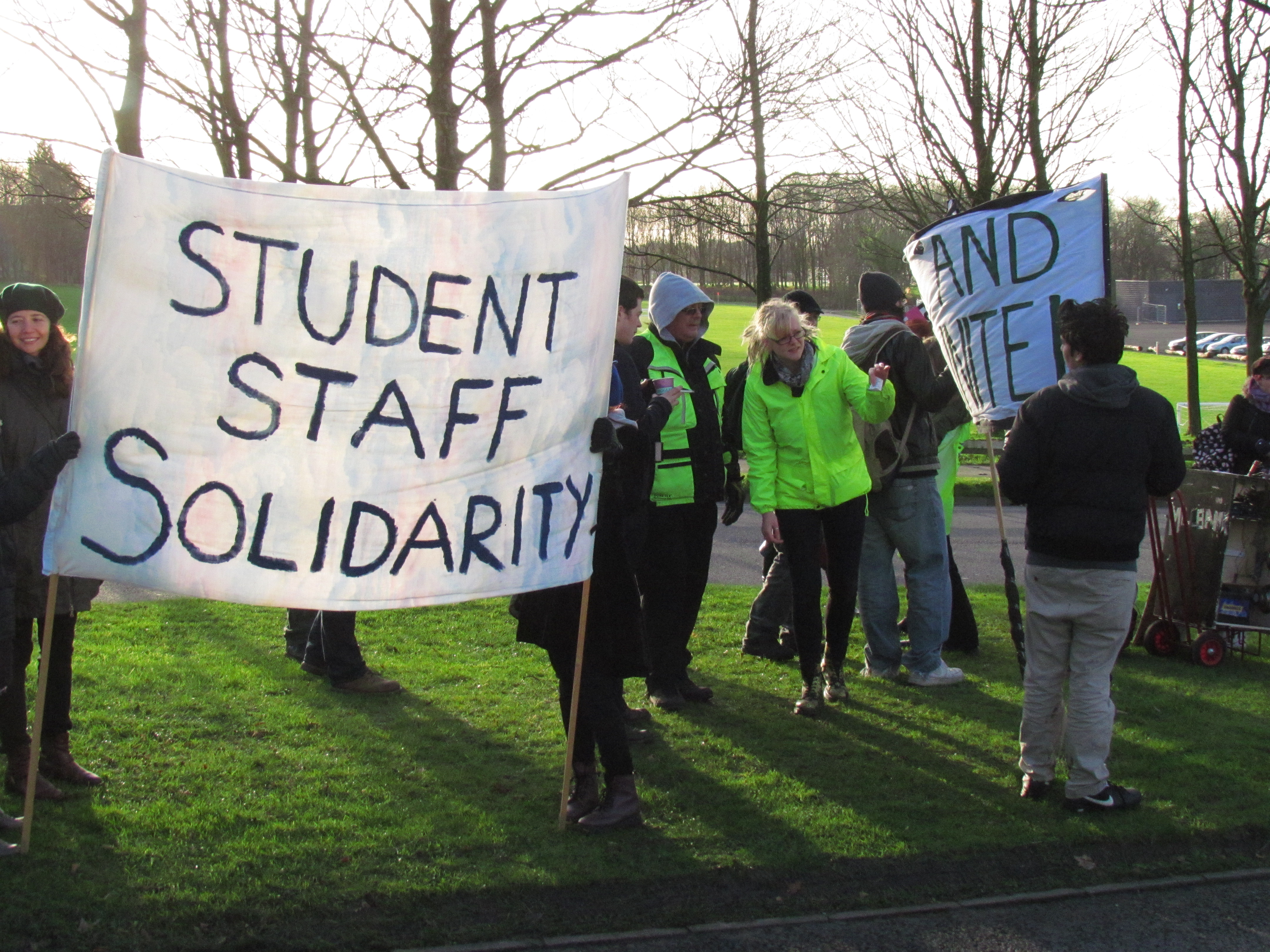 The UCU members gathered at Bigforth Drive, near the Sports Centre, holding protest banners and placards and canvassing passing motorists en route to the main campus.