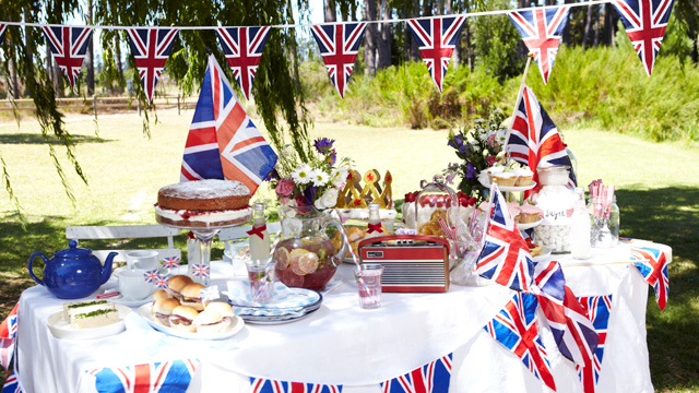 The location. Part of the beauty of the Jubilee is there doesn’t have to be a specific venue. A street party is the obvious option, though it’s worth checking with the local authority before you lug your dining table and chairs into the bus route. But with the weather as it is, the possibilities are endless: you could take the festivities down to your local park, go to one of the many beer gardens for some casual drinks or head to Morecambe beach. If it decides to shower, your living room or kitchen can be the perfect answer. With everyone jumping on the British bandwagon, it’s never been easier to throw together a British-based bash: whether it’s a picnic, BBQ, tea party, or themed night out, all the local shops are packed to the rafters with union jack themed accessories. So wherever you end up, you can easily be prepared with flags, bunting and paper plates, all sporting blue, white and red.