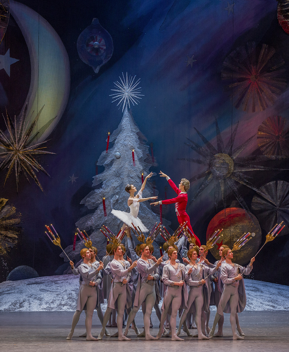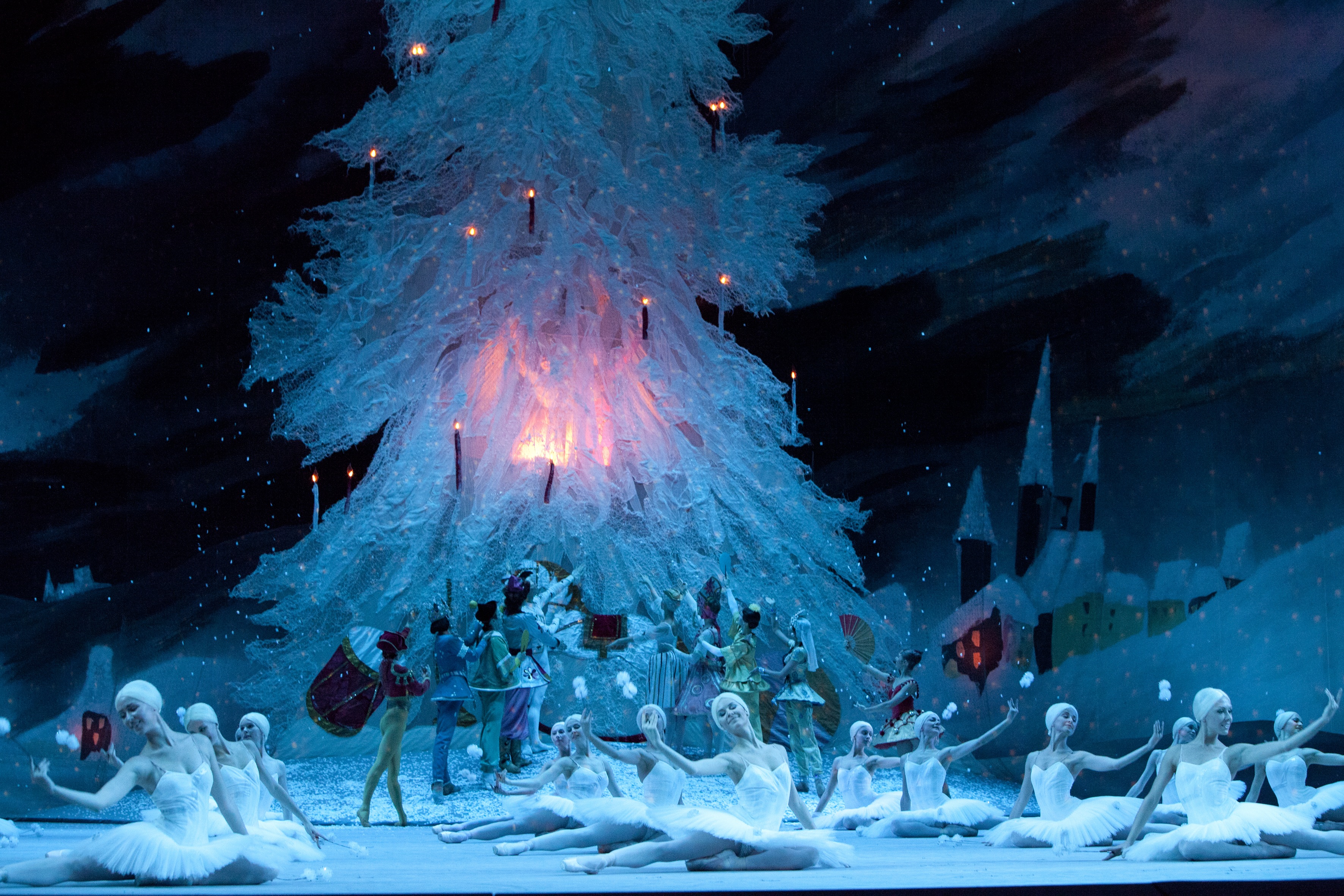 Although, the second act significantly pulled the performance back from the negatives. The series of pas de deux as the character entered the realm of sweets were full of energy. From Chocolate to Liquorice, these personified sweets invigorated the performance with contrasting styles of movements, huge leaps and daring lifts, creating a sense of excitement with them. Both The Waltz of the Flowers and Dance of the Sugar Plum Fairy created the best climatic moments of the show, as full company numbers which contained everything you’d expect from a ballet; from excessive pirouettes to high extensions that defied gravity, and beautifully moving formations. Both Marie and The Nutcracker (Semyon Chudin) performed technically perfect solos and duets, and they both showcased their extensive training. In particular, I enjoyed the progression of Marie’s character, something which is often lacking in the English version of the tale. Just as The Nutcracker transforms from a doll into a person, Marie is likewise given a transformation from a childish girl to a prima ballerina. Her costume changes cleverly aid this suggestion, moving from her nightgown to a full tutu and veil by the end of the performance. Marie becomes the Sugar Plum Fairy and her own character in a way Clara does not.